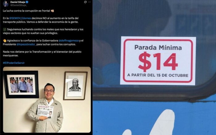 “En la SEMOV decimos NO al aumento en la tarifa del transporte público. Vamos a defender la economía de la gente”, escribió enfático Daniel Sibaja el 11 de octubre de 2023 en su cuenta de X, poco menos de un mes después de que Delfina Gómez tomó posesión como gobernadora del Estado de México y lo designara titular de la Secretaría de Movilidad (SEMOV).