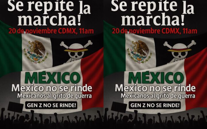 La Generación Z ha convocado a una nueva marcha para el 20 de noviembre, que nuevamente partirá del Ángel de la Independencia al Zócalo bajo el lema “Mexicanos al grito de guerra”, como continuación a su exigencia de seguridad, justicia y libertad.