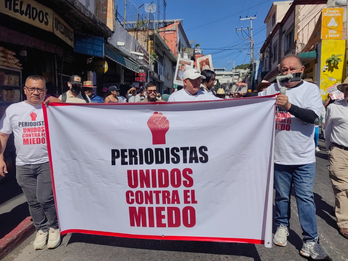 Durante la movilización, un grupo de periodistas de Morelos se integró al contingente para visibilizar las amenazas y agresiones que enfrentan en su labor diaria.