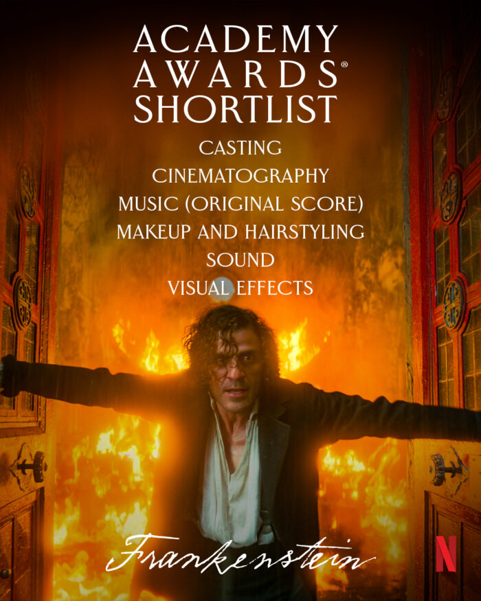 La recién adaptación del director mexicano Guillermo del Toro de ‘Frankenstein‘ obtuvo seis precandidaturas para optar al Óscar en seis categorías, anunció este martes la Academia de Hollywood.