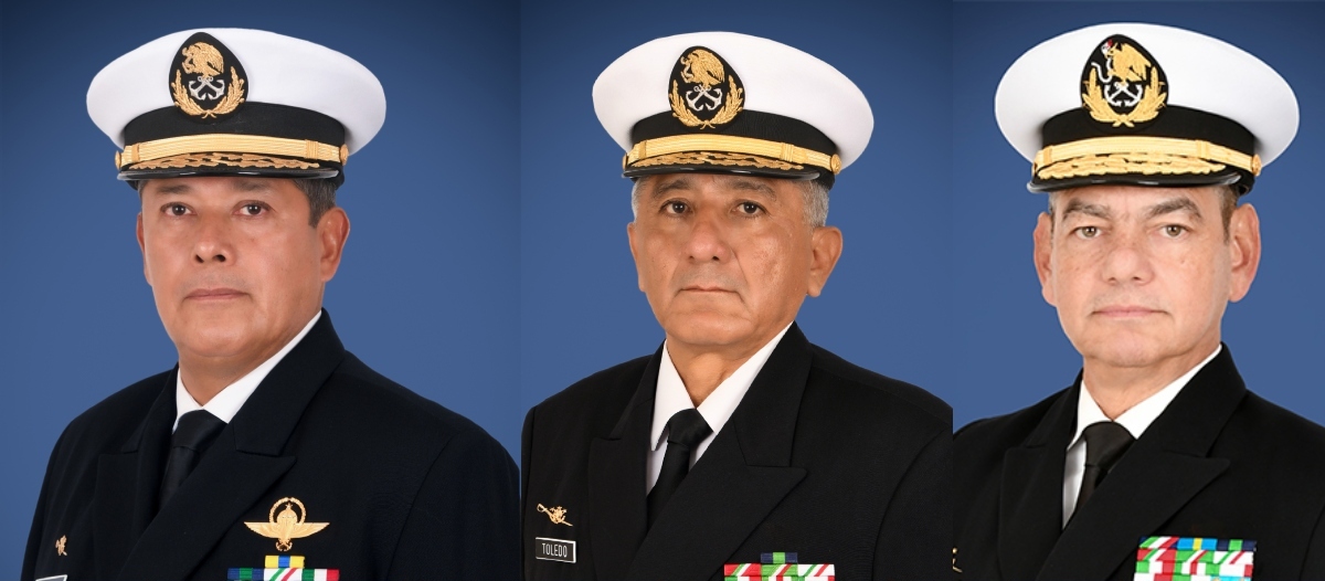 Jefe de Operaciones Navales, José Manuel Salinas Pérez (Foto izquierda). Subsecretario de Asuntos Marítimos, Gerardo Toledo Guzmán (Foto al centro). Contralor naval Carlos Eduardo L’Eglise Escamilla (Foto Derecha)