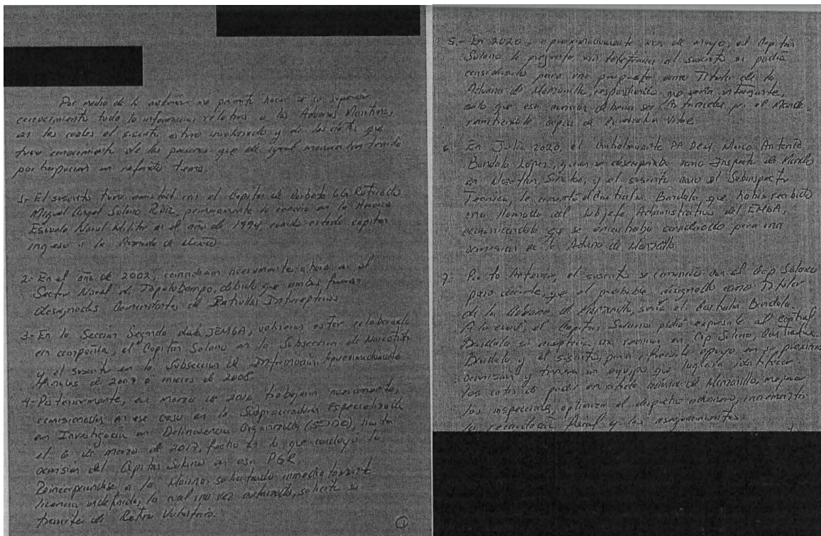 Lo que sí se conoce es qué pasó después de la reunión grabada: Fernando Rubén Guerrero Alcantar escribió a mano una carta resumiendo todo lo que sabía sobre la red de corrupción. Semanas después se reunió con el secretario de Marina nombrado por Claudia Sheinbaum, Raymundo Pedro Morales Ángeles.