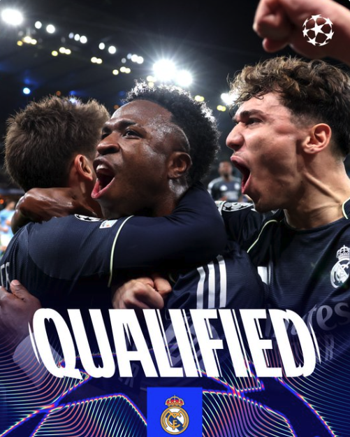 El conjunto merengue clasificó a Cuartos Final al imponerse como visitante 1-2, global 1-5, a Manchester City, tras un doblete del brasileño Vinícius Júnior; el próximo rival del conjunto español muy probablemente será Bayern Munich.