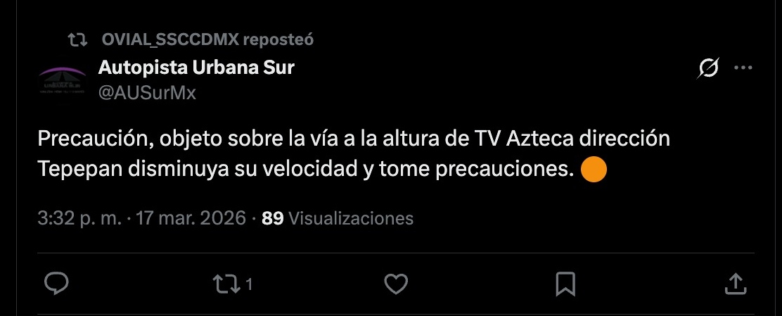 Una megalona que colgaba sobre un edificio Periférico Sur a la altura de la colonia Jardines del Pedregal, alcaldía Álvaro Obregón, se desprendió por los fuertes vientos y voló hacia los carriles centrales de esa vialidad, obstaculizando de forma parcial el paso de autos sobre Periférico rumbo a Insurgentes Sur, tanto en carriles centrales como en el Segundo Piso.