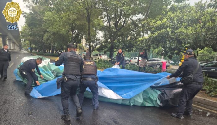 Tras el incidente ocurrido a las 15:20 horas, policías capitalinos comenzaron a enrollar la lona para evitar accidentes vehiculares en Periférico Sur.