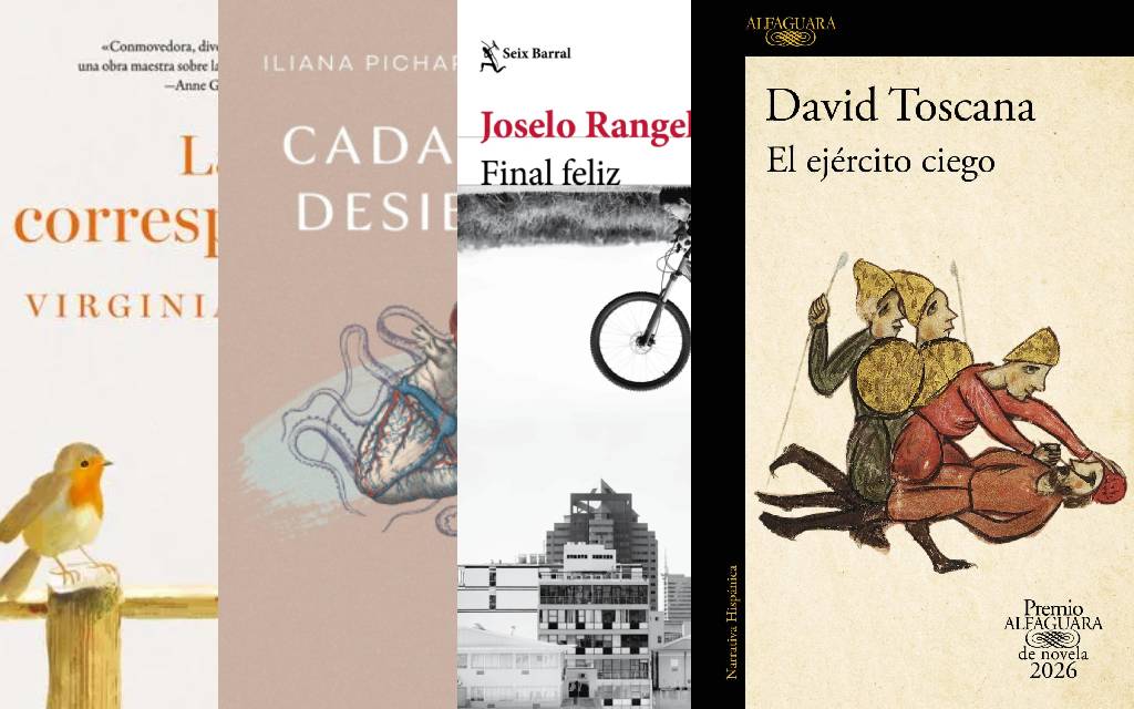 La flamante novela ganadora del Premio Alfaguara llega a las librerías mexicanas. El ejército ciego del regiomontano, David Toscana nos lleva de viaje hasta la época bizantina para hacernos pensar sobre nuestro presente. Final feliz, es un conjunto de relatos de Joselo Rangel, una vez más, el también guitarrista de Café Tacvba nos demuestra que es notable narrador. Iliana Pichardo Urrutia es una autora cuyos libros jamás nos dejan ileso, un nuevo ejemplo de esto es Cada mar desierto, una obra profunda y que cala hondo. Cerramos nuestras recomendaciones con la conmovedora y estimulante novela La corresponsal, de Virginia Evans.