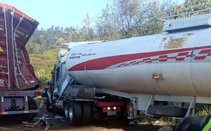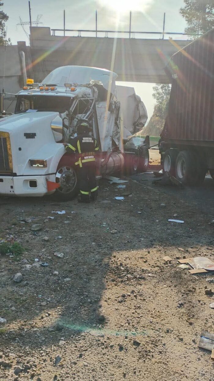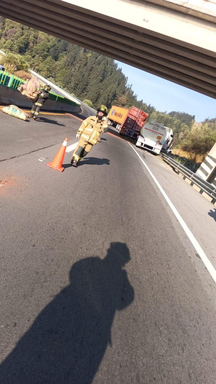 La autopista Toluca–Naucalpan permanece cerrada en ambos sentidos desde hace más de 24 horas, tras el choque entre dos tráileres, uno de ellos transportaba combustible, que se derramó sobre la vía.