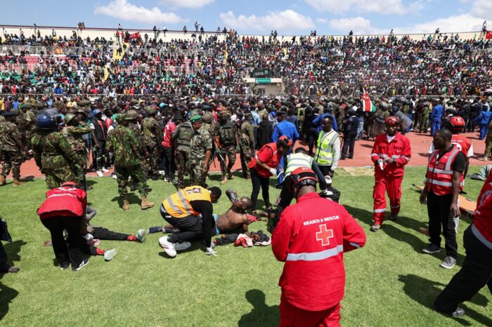 Tras los incidentes, se ofició una ceremonia privada encabezada por el presidente de Kenia, William Ruto, en dependencias interiores del estadio, dirigida por capellanes, en la que se abrió el féretro ante el que desfilaron familiares y autoridades.