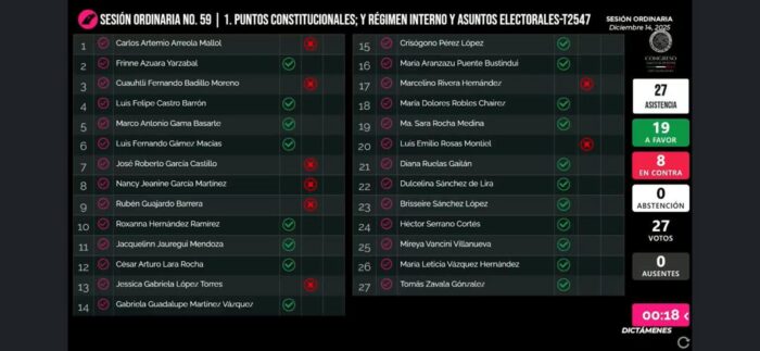 La condición derivó de la reforma constitucional y legal — propuesta por el Consejo Estatal Electoral— aprobada por mayoría del Pleno hace dos días, mediante la cual se modificaron los artículos 36 y 72 de la Constitución Política del Estado, así como diversas disposiciones de la Ley Electoral.