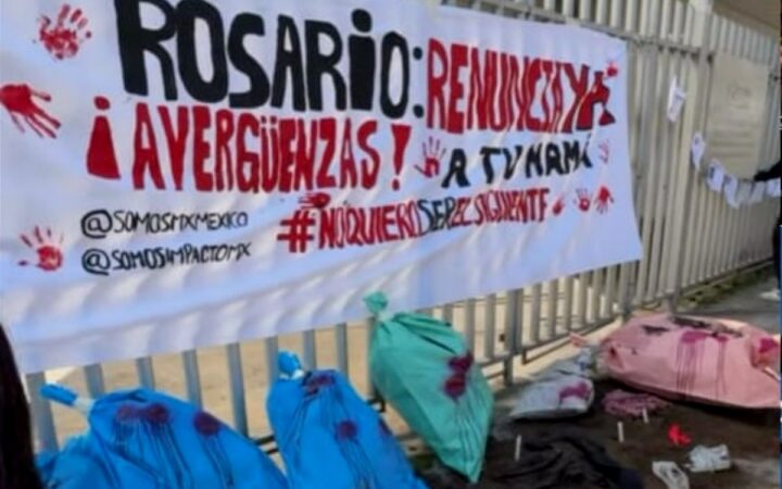 De acuerdo con los activistas, la manifestación incluyó consignas como “¡Rosario Piedra, renuncia!” y “¡Vivos se los llevaron, vivos los queremos!”, en referencia a las demandas de colectivos de búsqueda en el país.