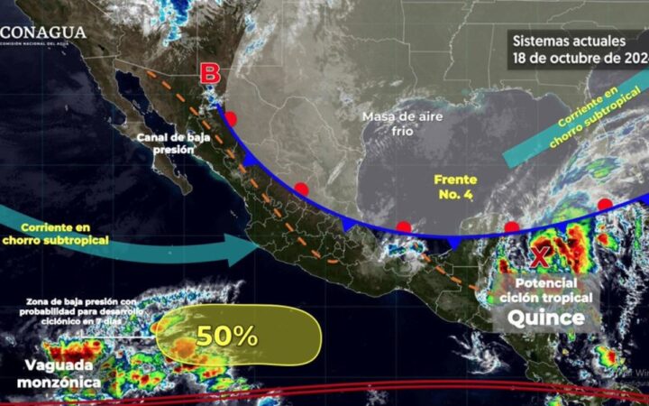 Posteriormente, apuntó Méndez Girón, el sistema se degradará a una baja presión remanente y se desplazará durante el fin de semana sobre el sur de Campeche, Tabasco, sur de Veracruz, Oaxaca y Chiapas.