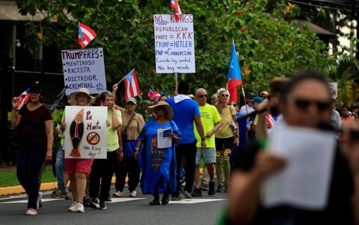 Cientos de personas en Puerto Rico se manifestaron este sábado frente al Tribunal Federal de San Juan, para denunciar las “políticas autoritarias, racistas, dictatoriales y los abusos de poder” del presidente de Estados Unidos, Donald Trump, bajo el lema “No King’s” (‘No queremos reyes’).
