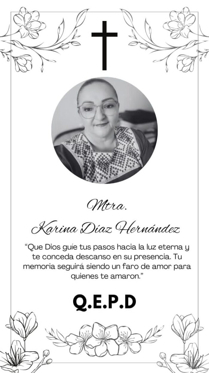 “La violencia no debe quebrantar nuestra unidad; al contrario, nos convoca a fortalecer la paz, la solidaridad y la justicia en nuestro municipio. En memoria de la Maestra Karina Aurora Díaz Hernández, reafirmamos nuestra convicción de trabajar incansablemente por un Palizada más seguro, más justo y más humano”, concluye el texto.