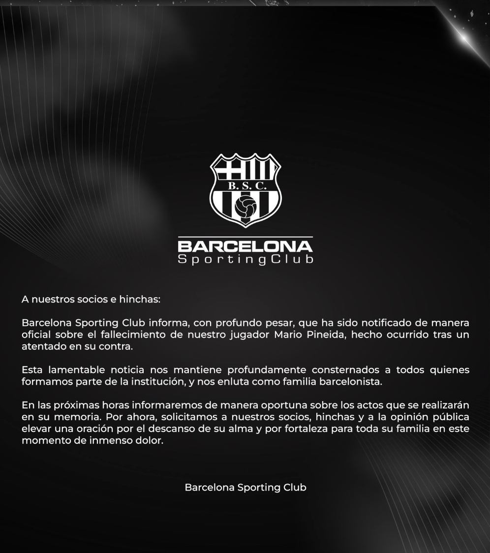 El jugador, cuyo último equipo fue Barcelona de Guayaquil, fue acribillado a plena luz del día y en la vía pública de una concurrida zona de Guayaquil; el país sudamericano atraviesa por una crisis de violencia sin precedentes causada por bandas del crimen organizado.