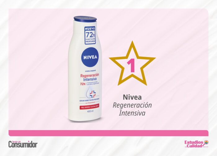 En el primer lugar se colocó la crema Nivea Regeneración Intensiva con humectación profunda en su presentación de 400 mililitros. El producto cumplió con el contenido neto reportado y tiene un costo promedio de 73 pesos en el mercado. Asimismo cuenta con un pH de 6.6.