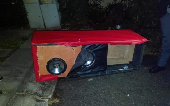 Durante la inspección, las autoridades localizaron a la víctima dentro de una caja de madera pintada parcialmente de color negro constituida con dos bocinas tipo bafle.