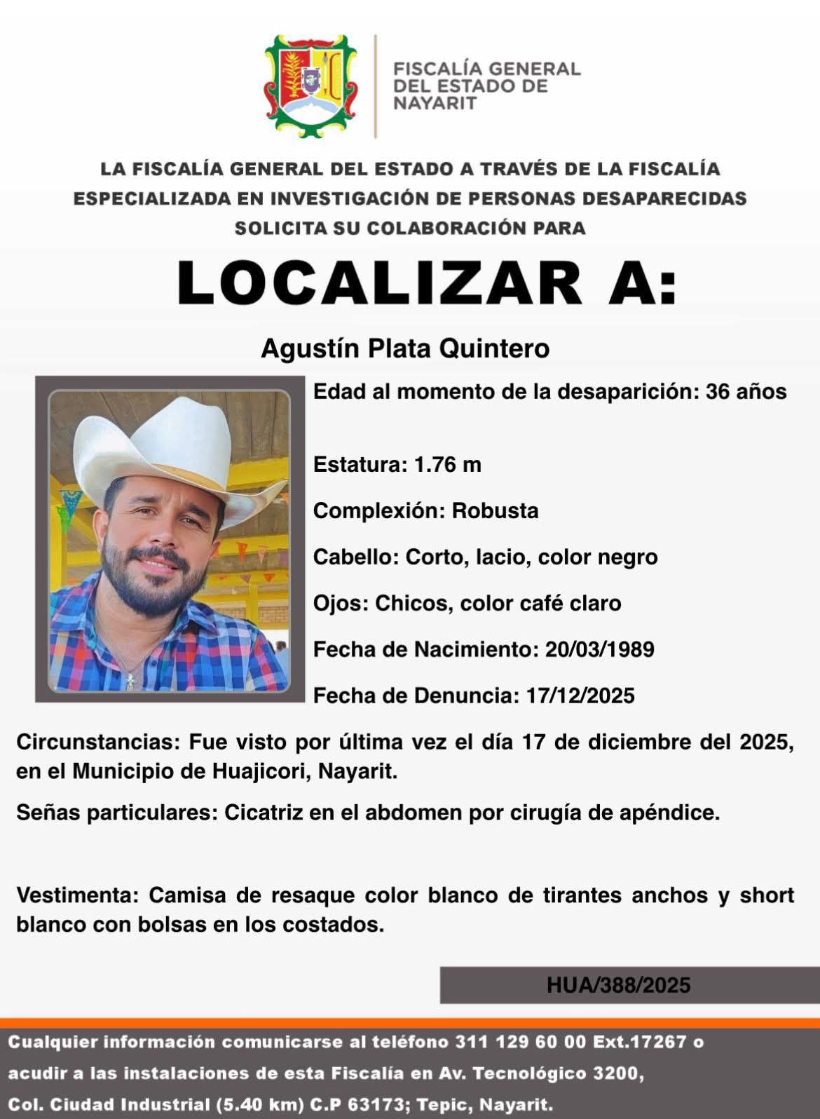 El docente, de 36 años, fue visto por última vez el 17 de diciembre, según una ficha de búsqueda difundida por la Fiscalía General del Estado de Nayarit.