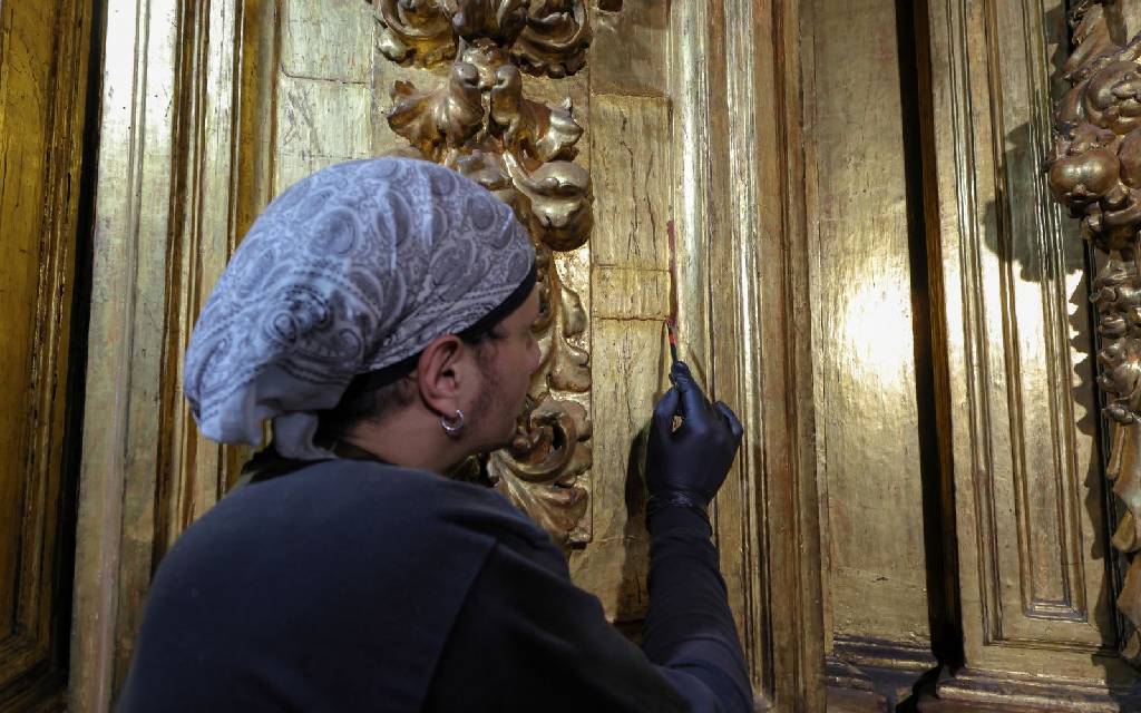 La restauradora Guerra Olvera recordó que el retablo no se intervenía desde 2006, ya que, al ser una obra monumental que mide 25 metros de alto por 13.20 metros de ancho y 7.65 metros de profundidad, es necesario montar un andamio especial. “En aquel momento se realizó una intervención integral, por eso en esta ocasión el objetivo fue mitigar aquellos factores que pudieran afectar más adelante”.