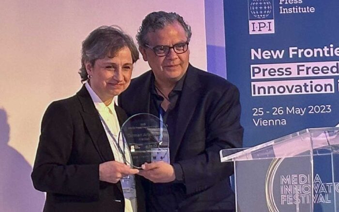 La periodista Carmen Aristegui lo recibió en 2023, por su trayectoria de décadas “de periodismo valiente sobre la corrupción en México, independientemente del gobierno en el poder, y su compromiso inquebrantable con el periodismo crítico frente a los esfuerzos dirigidos a silenciarla”.
