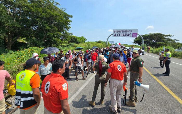 Unas 200 personas migrantes de diversas nacionalidades ingresaron la tarde del sábado a territorio oaxaqueño por la frontera sur, en la caravana denominada “La Libertad”.