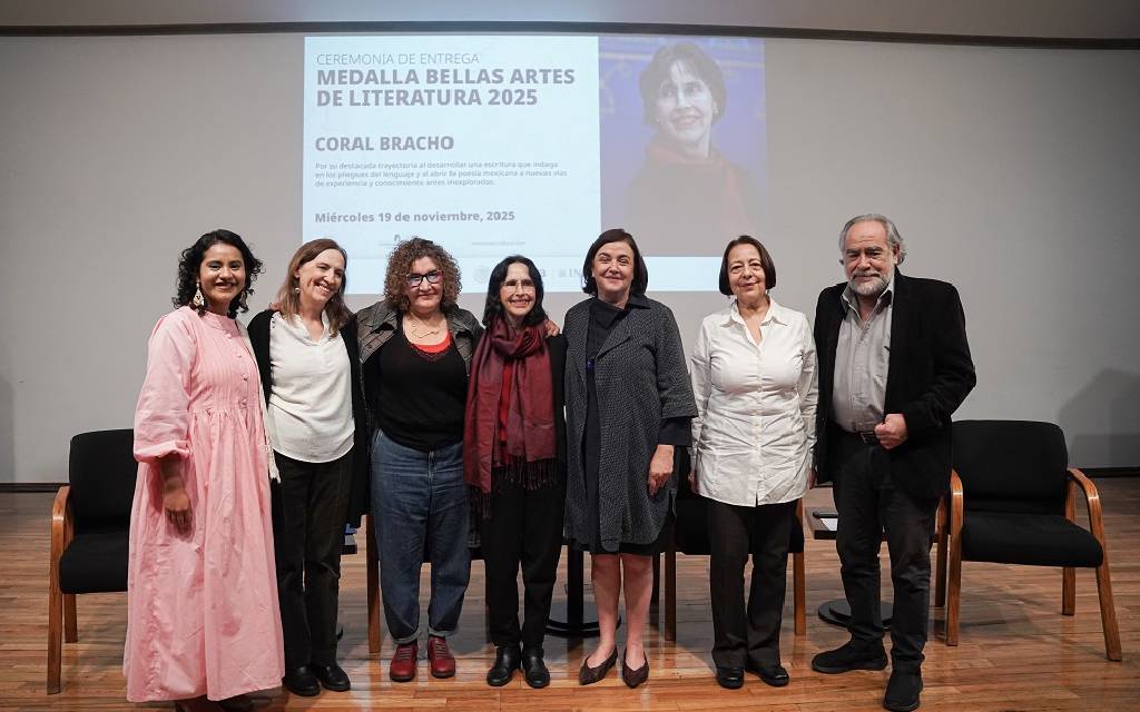 La poeta Coral Bracho (Ciudad de México, 1951) recibió la Medalla Bellas Artes de Literatura 2025, en una ceremonia en la Sala Manuel M. Ponce del Palacio de Bellas Artes, en reconocimiento a su aportación a las letras mexicanas y por su destacada trayectoria en la poesía contemporánea,