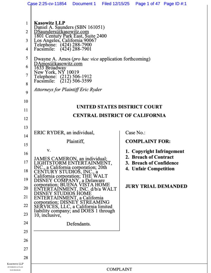 La demanda de Eric Ryder, presentada el lunes, afirma que colaboró con Lightstorm Entertainment, propiedad de Cameron, en el desarrollo de una película basada en su historia de ciencia ficción “KRZ” a finales de la década de 1990. Según la denuncia, Cameron copió elementos de la historia para la saga ‘Avatar’.