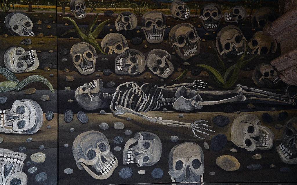 Como recordó el arqueólogo Raúl Barrera Rodríguez, responsable del hallazgos del Huei Tzomplantli durante la inauguración, el mural nació de una reflexión del artista sobre la muerte representada en los tzompantli, que son precisamente altares formados por cráneos humanos con fines rituales y sagrados.