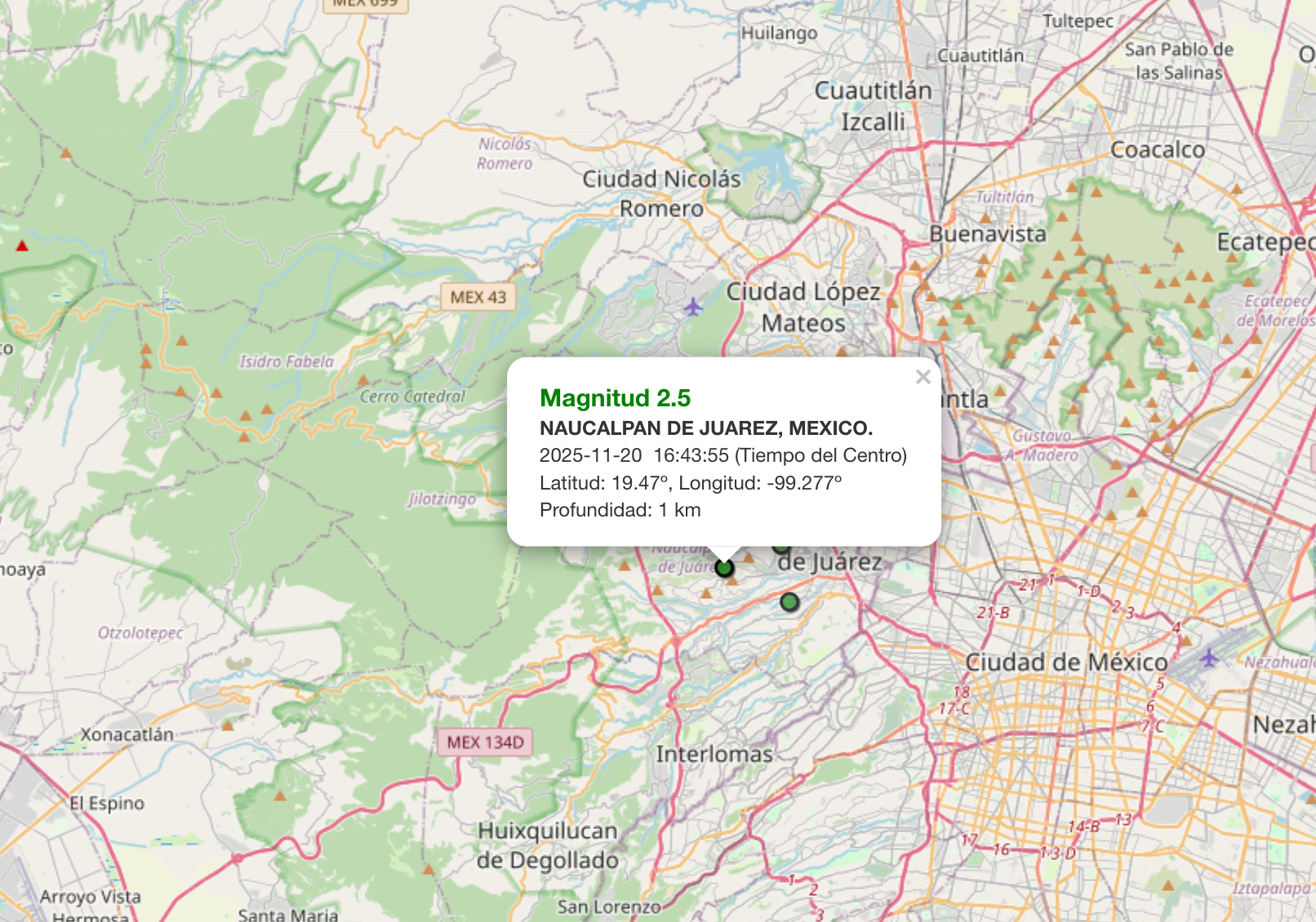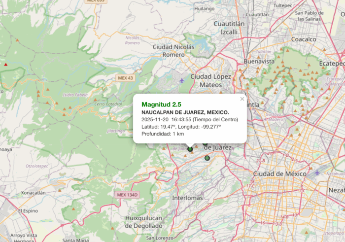 El Servicio Sismológico Nacional (SSN) informó que tres microsismos con epicentro en Naucalpan, en el estado de México, se registraron este jueves.