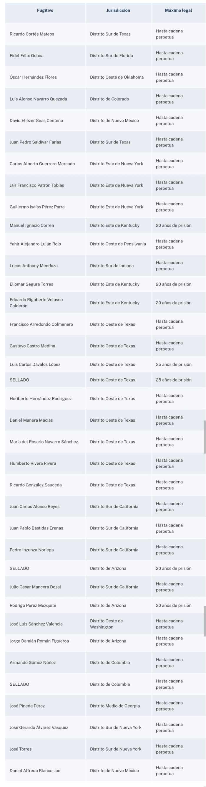 Estos son los 37 'fugitivos' mexicanos y las penas que enfrentarán en Estados Unidos