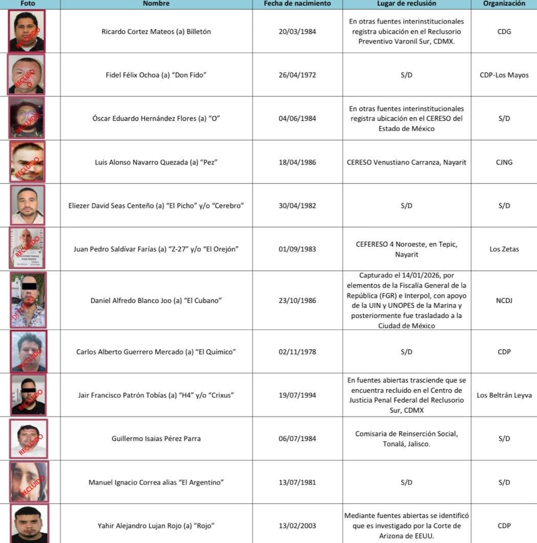 Según las autoridades, la operación incluye a fugitivos con antecedentes en cárteles históricos y violentos, que durante años han operado impunemente en México y Estados Unidos, controlando rutas de tráfico de drogas y armas, y organizando redes de lavado de dinero y secuestros.
