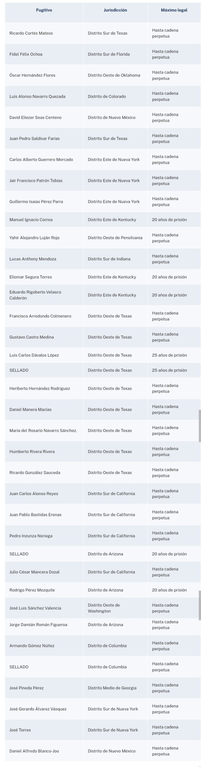 Estos son los 37 'fugitivos' mexicanos y las penas que enfrentarán en Estados Unidos