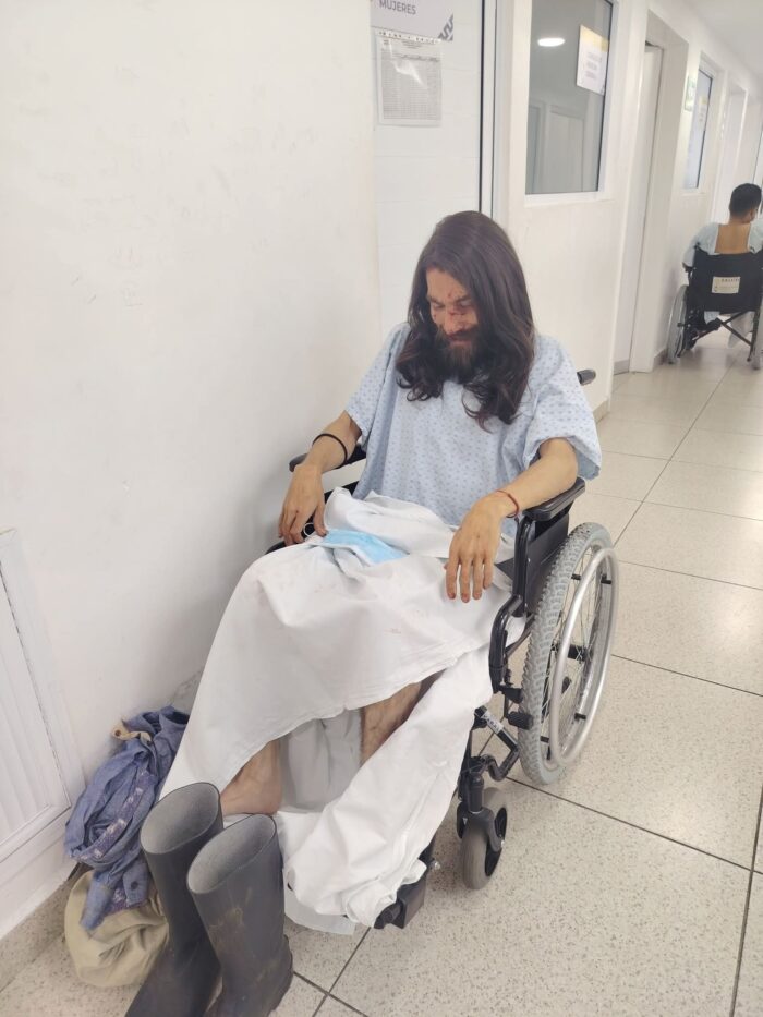 Paramédicos del grupo Panteras de la Secretaría de Seguridad Pública acudieron al lugar y atendieron al activista, pero tuvo que ser trasladado a un hospital para su valoración.