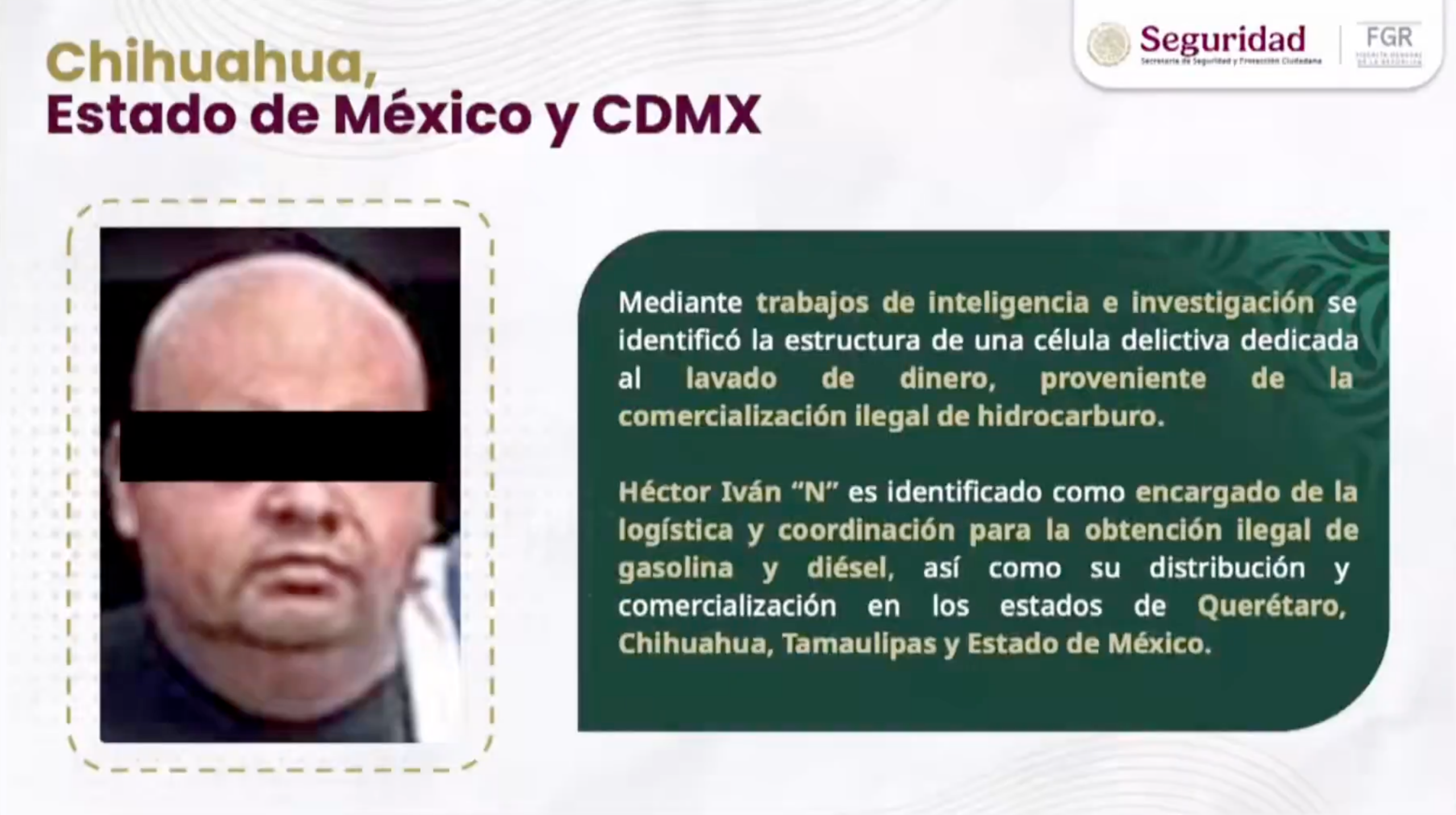 García Harfuch añadió que en Chihuahua, Estado de México y Ciudad de México se realizaron 11 operativos con la detención de 7 personas más, integrantes de otro grupo delictivo vinculado al huachicol.