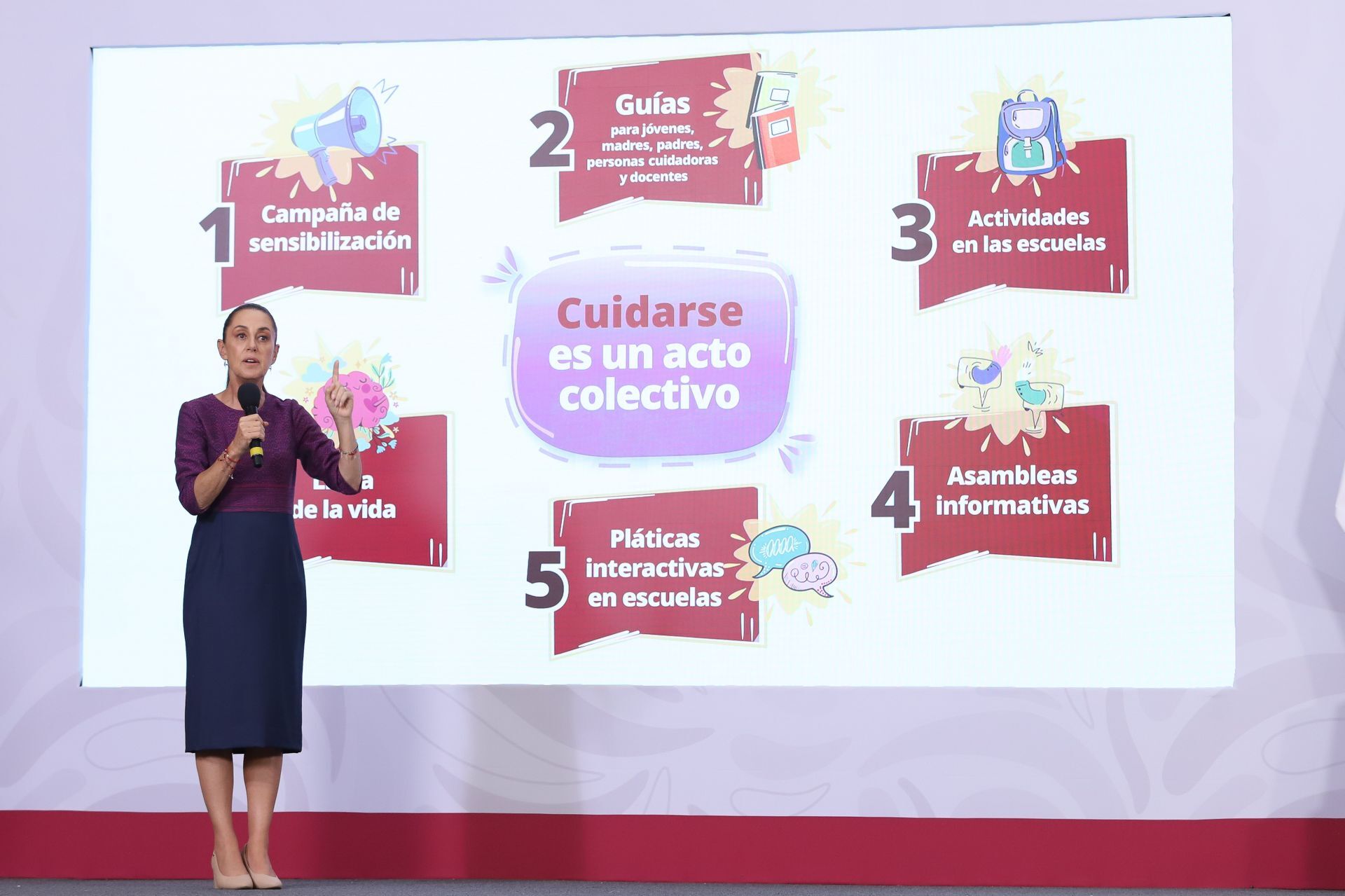 Entre las acciones anunciadas destacan la distribución de 18 millones de guías, actividades semanales en salones de clase, asambleas con madres y padres de familia, y el fortalecimiento de la Línea de la Vida con más profesionales especializados.