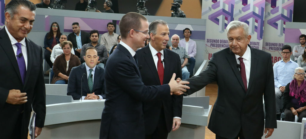 Con un nuevo formato tuvo lugar el segundo debate presidencial entre los cuatro candidatos que pretenden gobernar México de 2018 a 2024. Andrés Manuel López Obrador, de la Coalición ‘Juntos haremos historia’, gana al marcar claramente su diferencia con quienes le siguen en intención de voto; Ricardo Anaya Cortés, de ‘Por México al Frente’, reta y miente en su afán por alcanzar a AMLO en las encuestas; José Antonio Meade, de ‘Todos por México’, pontifica a partir de su experiencia como funcionario; y Jaime Rodríguez Calderón, el independiente, se mete de manera tangencial a la discusión.