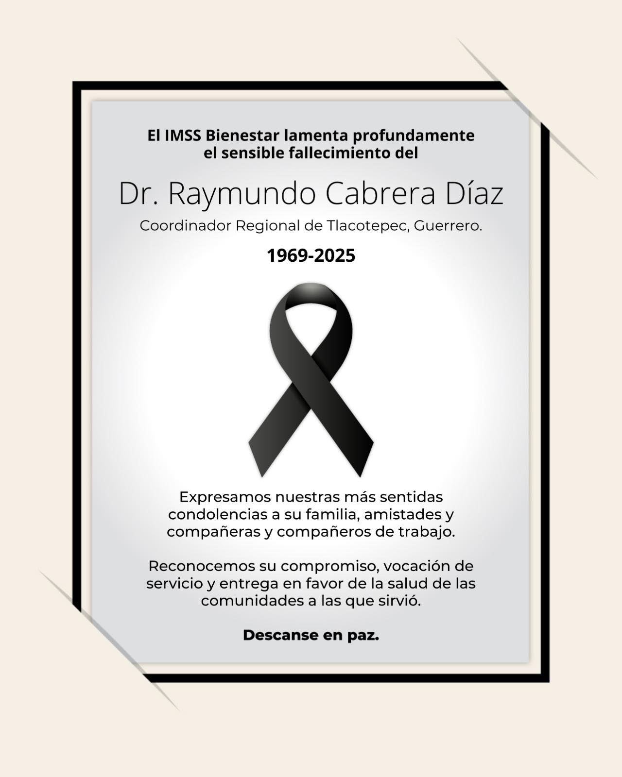 El Instituto Mexicano del Seguro Social (IMSS) en Guerrero confirmó este lunes el fallecimiento del doctor Raymundo Cabrera Díaz, quien se desempeñaba como coordinador regional del programa del IMSS-Bienestar y que fue asesinado a tiros en el municipio de Chilpancingo, capital de la entidad.