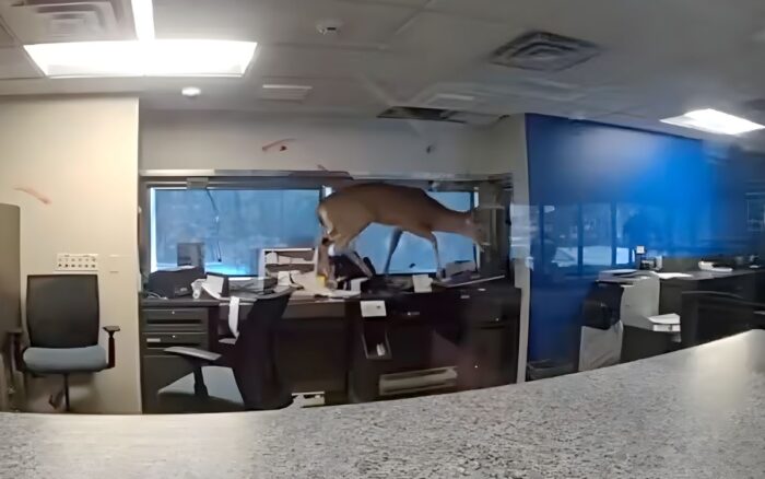 Este peculiar incidente ocurrió en un Webster Bank ubicado en Ridge, Long Island, perteneciente al condado de Suffolk. Según el reporte oficial, el animal atravesó una de las ventanas del establecimiento, haciéndola añicos, para quedar atrapado en el interior.