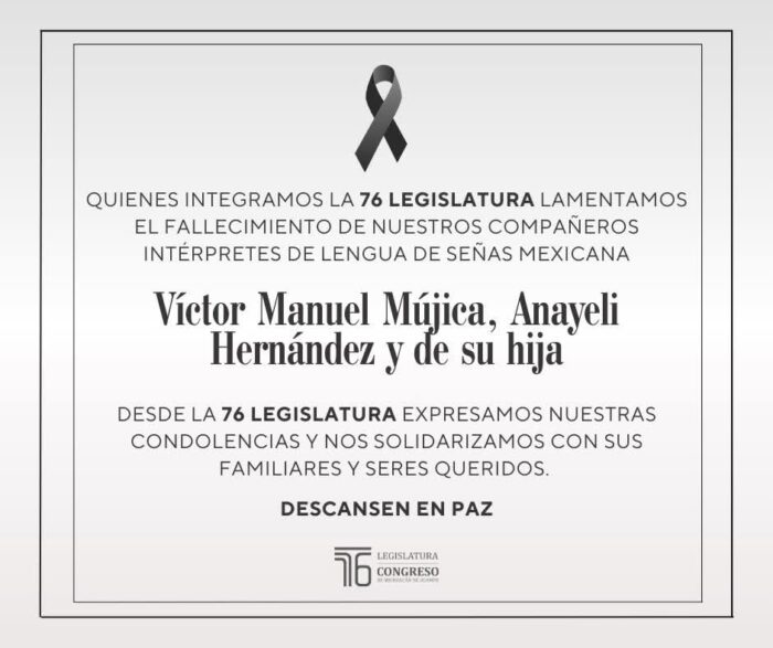 El Congreso del Estado de Michoacán lamentó el asesinato de dos intérpretes de Lengua de Señas Mexicana (LSM) y su hija, que eran sus colaboradores y quienes se encontraban desaparecidos desde el pasado 15 de enero.