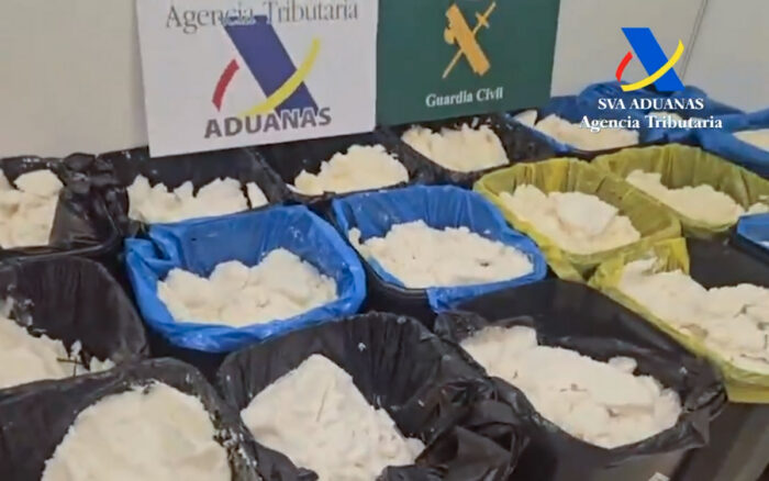 Autoridades españolas dieron a conocer este lunes el aseguramiento de 625 kilogramos de metanfetamina ocultos en un cargamento de aceite de coco procedente de México, como resultado de una operación conjunta de la Guardia Civil y el Servicio de Vigilancia Aduanera de la Agencia Tributaria.