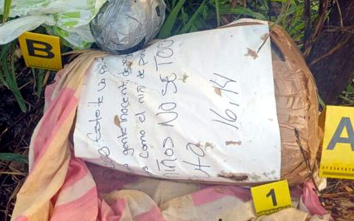 El cuerpo referido tenía una cartulina pegada con el mensaje: “Los niños no se tocan”.