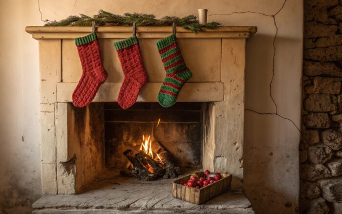El origen se remonta a San Nicolás de Bari, un obispo católico que vivió entre los siglos III y IV en la actual Turquía. Su reputación de bondad generó numerosas leyendas. La más persistente cuenta que, para ayudar a tres jovencitas cuya familia no podía pagar la dote (conjunto de bienes, dinero, propiedades o animales que la familia de la novia aportaba al matrimonio para contribuir a las cargas del nuevo hogar), dejó caer monedas de oro por su chimenea, las cuales cayeron en unas medias de lana que secaban al fuego. Este acto de caridad anónima explica dos tradiciones perdurables: colgar medias y la idea de que el dador de regalos no debe ser visto.