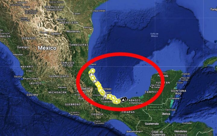 De acuerdo con la Red Corredor Arrecifal del Golfo de México, el derrame se extiende desde la laguna de Tamiahua, en Veracruz, hasta Paraíso, en Tabasco. Los primeros registros en el norte de Veracruz —incluidos Tamiahua, Tuxpan y Cazones— se documentaron el 18 de marzo de 2026, lo que marca el inicio visible de la contingencia en la zona costera.