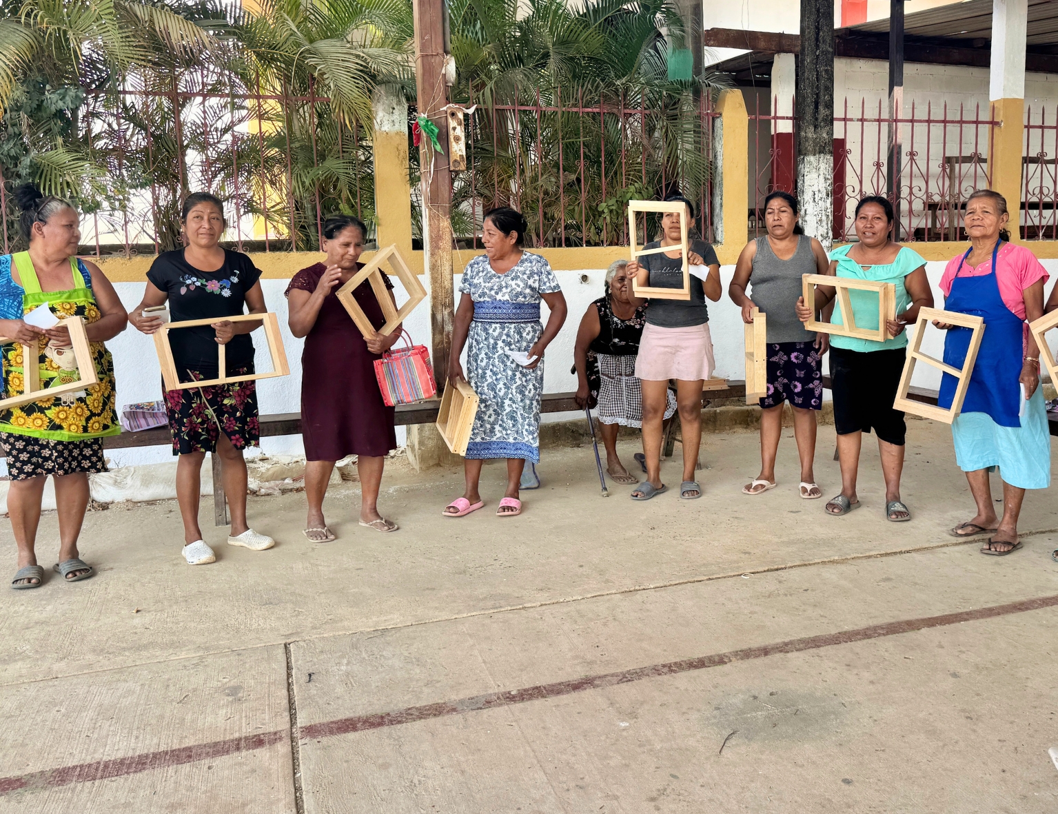 Las mujeres recibieron insumos y asistieron a talleres sobre sistemas constructivos y participan en la fabricación de los adobes necesarios para sus hornos.