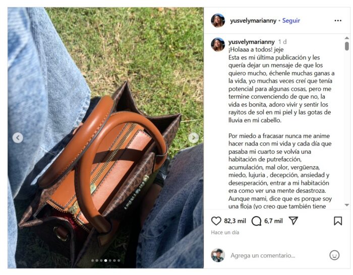 En sus palabras, Yusvely describe la desconexión y el estado emocional que vivía con ironía y tristeza.