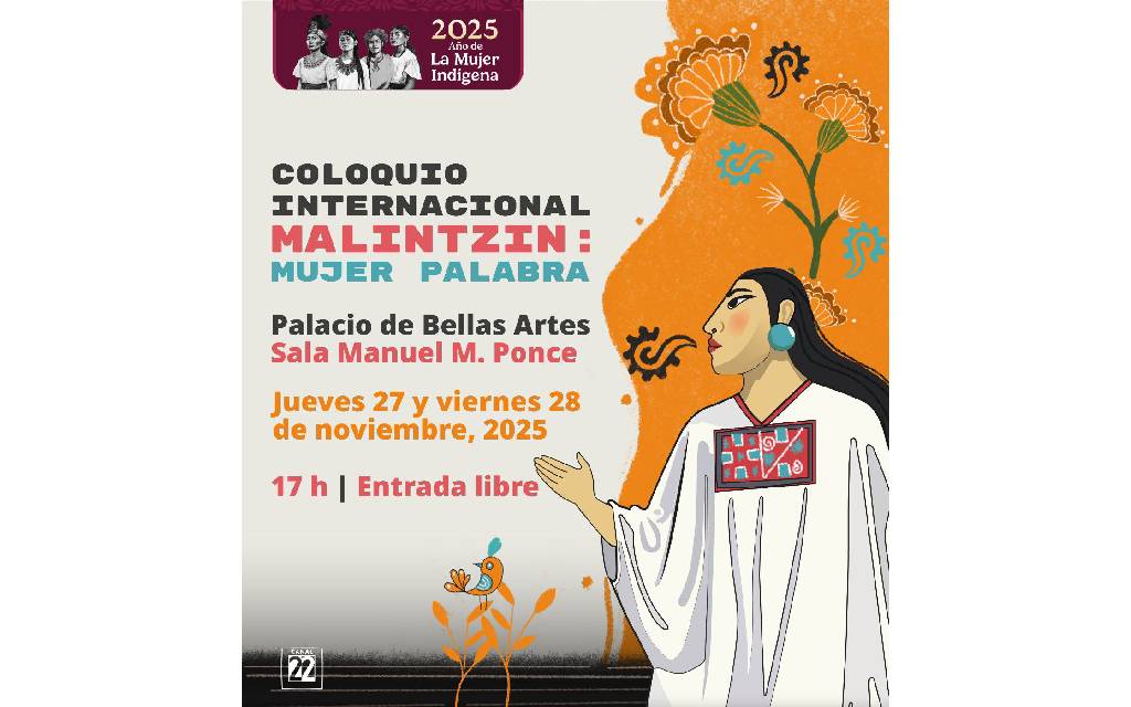 En el marco del Año de la Mujer Indígena, el jueves 27 y viernes 28 de noviembre se realizará el Coloquio Internacional “Malintzin: Mujer palabra” en el Palacio de Bellas Artes (PBA).