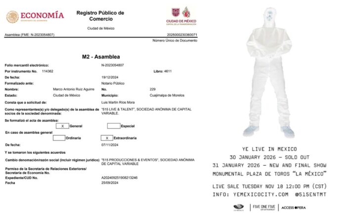 Un año después la empresa cambió su nombre a 515 Producciones & Eventos S.A. de C.V., razón social responsable del concierto de Kanye West en Ciudad de México, según el sitio web del evento.