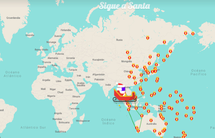 Para que los más pequeños de la casa puedan seguir en tiempo real su recorrido, el Norad habilita cada año la web www.noradsanta.org con un mapa donde se puede ver a Santa y a sus renos saltar de país en país.