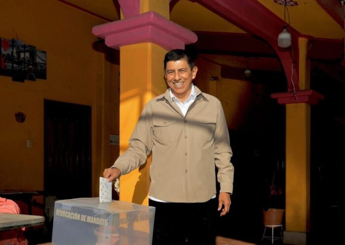 Tras emitir su voto, el gobernador, Salomón Jara Cruz, expresó que “será respetuoso de los resultados”, que se emitan en este Proceso de Revocación de Mandato en el estado de Oaxaca.
