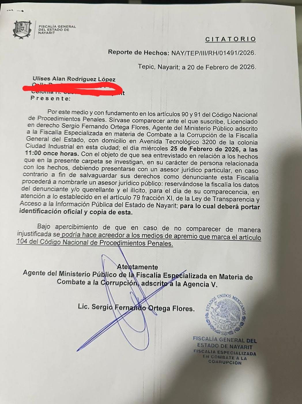El columnista advirtió que la fiscalía, a partir de este citatorio, busca que él interponga una denuncia formal contra el gobernador por la situación del estadio y simular investigaciones, ya que será la misma Fiscalía la que determinará si tiene fundamento o no.