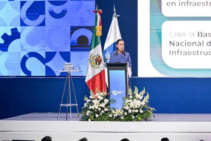 Sheinbaum participó en la 82 Asamblea Anual de la Cámara de la Industria de la Transformación (Caintra), Nuevo León, celebrada en la capital del estado, Monterrey.
